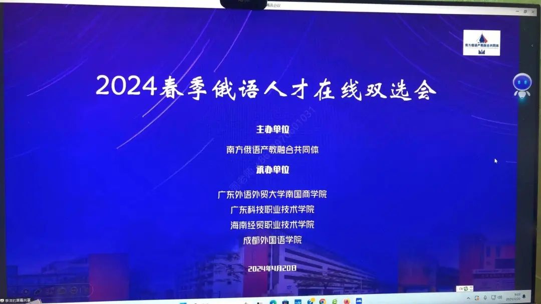 2138CC太阳集团结合学院专业+俄语人才培养办学特色,于2024年4月20日上午,组织2024届毕业生参加南方俄语产教融合共同体首届线上春季俄语人才双选会。