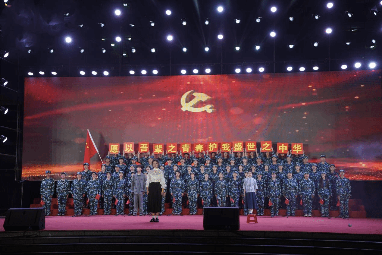 ▲迷彩方阵中,我院军训合唱队凝声演唱《松花江上》,每一句都直击人心