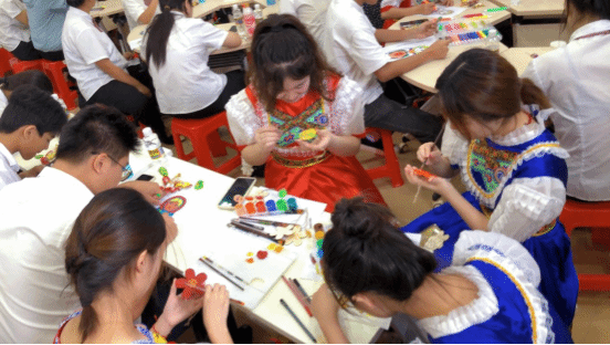 在外教老师的指导下,同学们亲手体验俄罗斯传统工艺的制作。