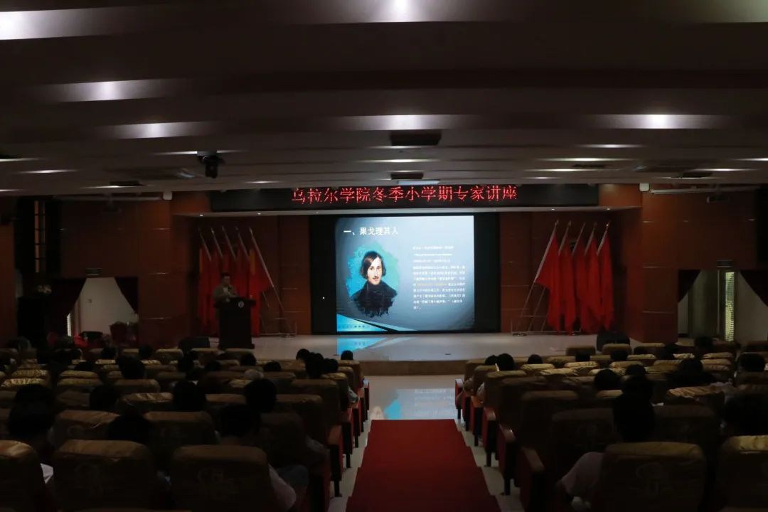 2023年12月28日下午,华南师范大学朱涛教授给乌拉尔全院学生进行了题为“怪诞的天才——从果戈理的中篇小说《鼻子》说起”的讲座。朱教授用生动有趣的语言让学生了解了俄国著名的现实主义小说家、剧作家果戈理以及其最有名中篇小说之一《鼻子》,让学生对俄罗斯文学有了进一步的了解。