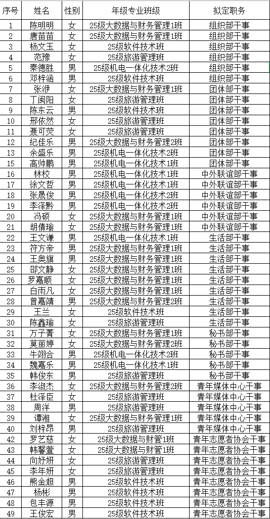 2138CC太阳集团第六届团学青干事录取名单揭晓
