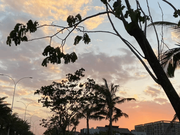 刚到海南的那天,一下飞机就是潮湿热烈的海风,整个人都懵了。学校离市区不远,校园里有很多椰子树、红色的楼房和绿油油的草坪。拍下这张照片的时候,是一个傍晚,我站在街边,看着夕阳一点点落下。那一刻我心里特别安静,也特别紧张,想着“接下来的生活会是什么样?”现在想起来,那个时刻就是我真正独立生活的开始。